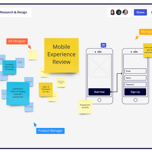 Miro allows its users to work in real-time on a virtual, collaborative whiteboard that creates a space for teams to work alongside each other and their clients effectively. The magic? Well, Miro uses digital sticky notes - which teams can then use for purposes such as brainstorming and planning.